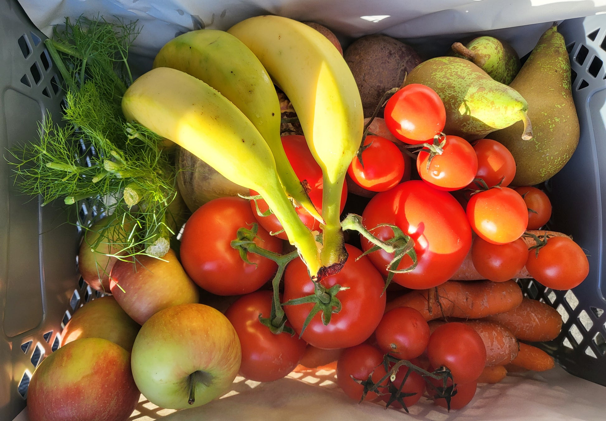 - Eine abwechslungsreiche Auswahl an Obst und Gemüse, je nach Saison und Verfügbarkeit